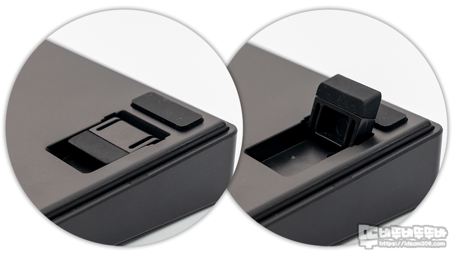 실리콘 차음재 구성으로는 회색 컬러의 실리콘 차음재 이외 검정 컬러의 실리콘 바 2개가 제공되는 이것은 스페이스바 보강판의 공간을 메꾸는 용도로 제공되는 부분이니 참고하시기 바랍니다.