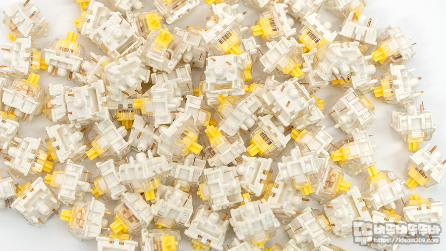 먼저 리니어 방식 게이트론 황축 스위치는 키압 50g은 리니어 특유의 구분감이 없으며 흑축과 적축의 중간 느낌으로 사용이 가능한 스위치인데요.