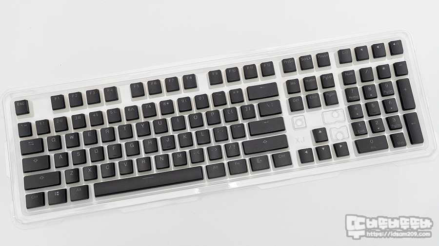 리뷰를 위해 다양한 제품이 추가로 제공되었는데 먼저 소개해드릴 제품은 PBT 영문 정각 푸팅 블랙 키캡입니다.