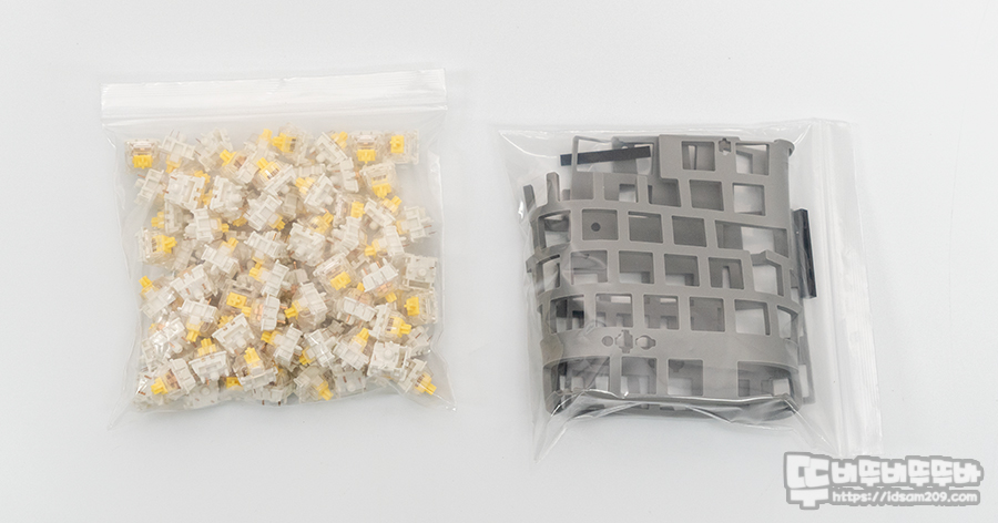 다음으로 소개해드릴 제품은 키보드에 키감을 좌우하는 스위치와 이번 리뷰에 하이라이트라 할 수 있는 실리콘 차음재입니다.