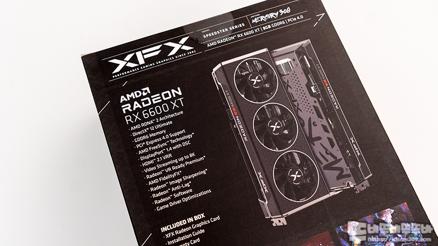 11월에 컴퓨존으로 통해서 80만원대 초반가격에 힘들게 구입한 XFX 라데온 RX 6600 XT MERC 308 BLACK D6 8GB입니다.