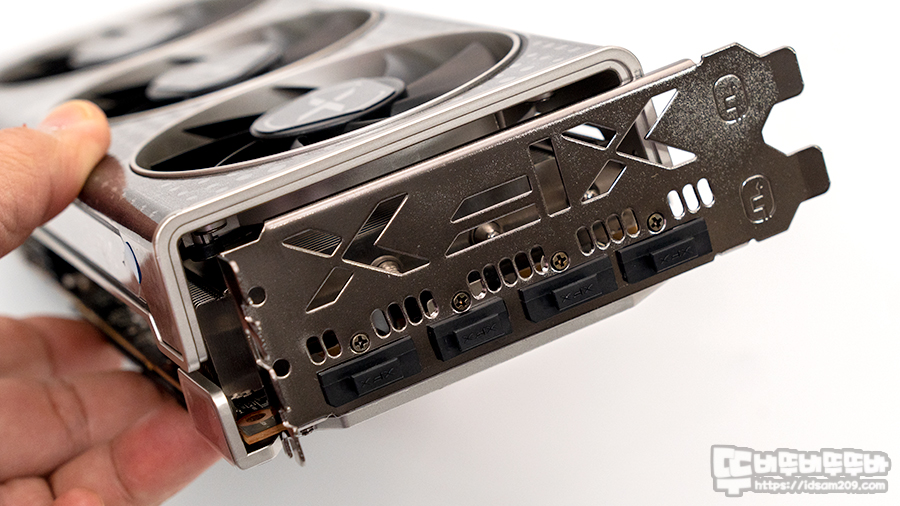 기대되는 그래픽 카드 상단의 로고 LED 모습.