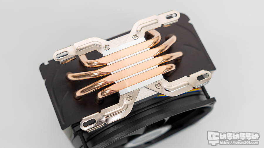 CPU와 접촉되는 베이스 플레이트는 구리 히트파이프가 직접 CPU와 접촉되어 열 저항 없이 발생된 열을 히트 파이프로 빠르게 전달하며 알루미늄 베이스에는 인텔 또는 AMD 프로세서에 따라 스마트 클립을 결합할 수 있게 디자인되었습니다.