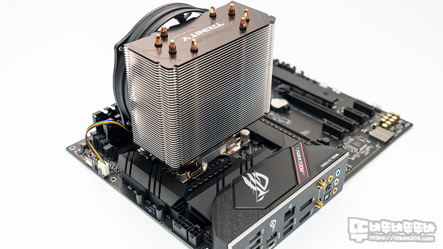 써모랩 TRINITY 7.0 CPU 쿨러가 조립된 모습입니다.