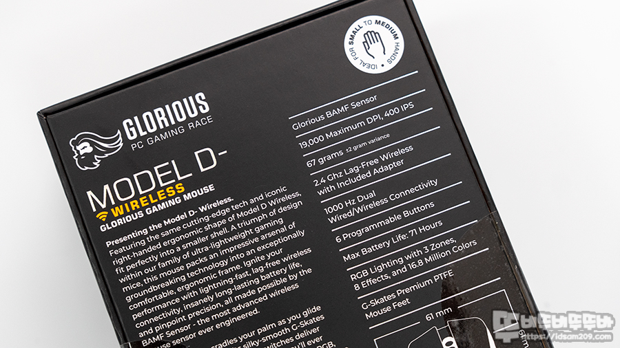 제조사의 제품 정보를 살펴보면 길이/좌우 폭, 높이 등에서 약간의 차이를 살펴볼 수 있으며 패키지에서도 이러한 부분을 MODEL D는 중간에서 큰 손에 적합, MODEL D-는 작안 손에서 중간 손에 적합이라고 분류를 하고 있는 것을 확인할 수 있습니다.