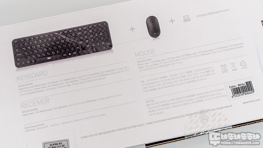 블랙/화이트로 판매되는 제품이기에 패키지 상단에 제품의 컬러를 구분하고 있으며 브리츠 오피스로 강조되는 로고가 눈에 띕니다.