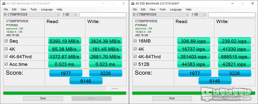 이전에 리뷰했던 PCIe 3.0을 지원하는 P5 모델과 비교 시 확실하게 성능 향상을 확인할 수 있습니다.