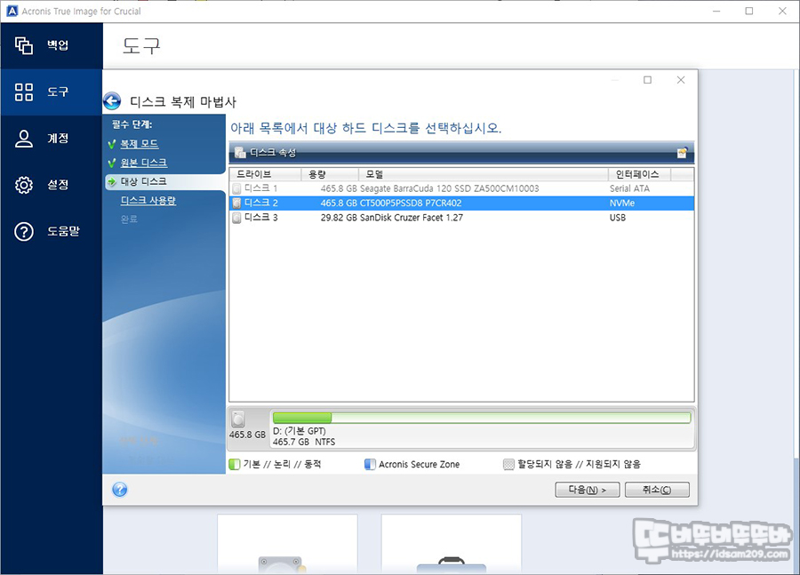 이 소프트웨어를 이용 시 SSD를 통째로 복사하는 마이그레이션도 가능하니 같은 용량의 디스크 교체 시 편리하게 사용하시기 바랍니다.