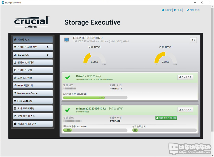 Crucial Korea 사이트를 통해 다운 받을 수 있는 SSD 관리 프로그램인 Crucial Storage Executive를 간단하게 살펴보겠습니다.