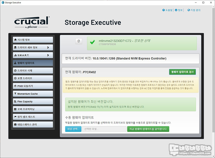Crucial Korea 사이트를 통해 다운 받을 수 있는 SSD 관리 프로그램인 Crucial Storage Executive를 간단하게 살펴보겠습니다.