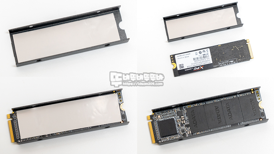 조립과정을 살펴보면 하단 방열판에 써멀 패드를 부착하고 M.2 SSD 부착하고 다시 써멀 패드를 부착하고 상판 방열판을 측면 나사 홀을 일치시켜 부착 후 나사로 결합해 주면 됩니다.