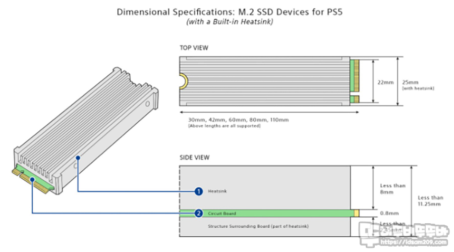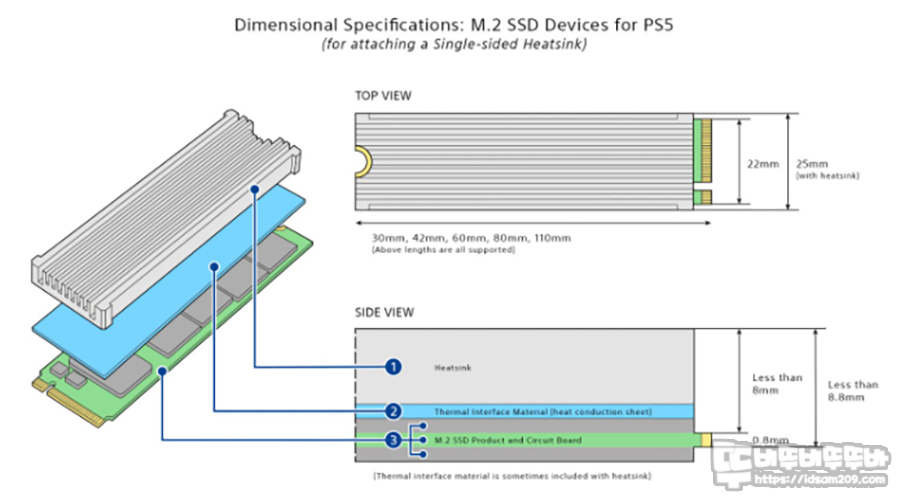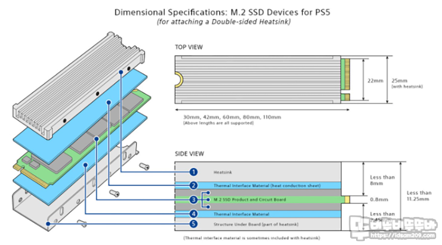 PS5에 사용 가능한 방열판은 폭 25mm 높이 상단 방열판만 사용하는 8.5mm 높이에서 샌드위치로 사용하는 11.25mm까지 수용이 가능한 것을 확인할 수 있는데요.
