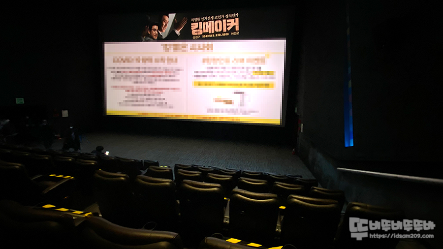 맨 앞좌석과 스크린이 거리가 있는 상영관이니 앞쪽에서 관람하셔도 크게 불편하지 않은 실 거 같아요.
