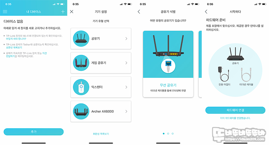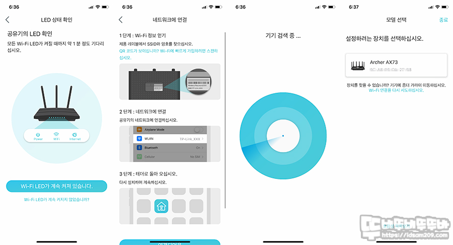티피링크 Archer AX73는 스마트폰으로 접속이 가능한 Tether 앱을 지원하고 있어 디바이스 추가 버튼을 눌러 화면에 지시하는 내용을 따라 진행하면 간편하게 연결이 가능하고요.