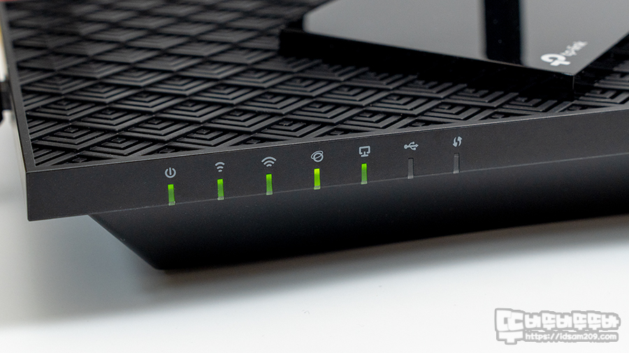 전원 / 2.4 GHz 무선 / 5 GHz 무선 / 인터넷 / 이더넷 / USB / WPS 작동에 관련하여 그린 LED가 점등하고 점멸하는 표시로 연결 상태를 알려주는데요.