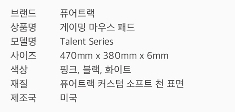 지금까지 퓨어트랙 Talent Pink Large 게이밍 마우스 패드에 대하여 알아보았습니다.