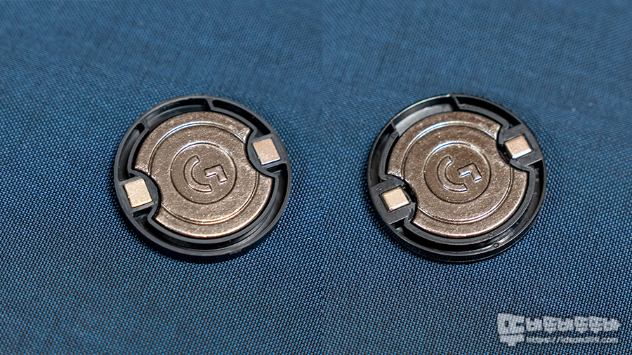 마우스에 사용되는 원형 커버는 로지텍 제품의 원형 커버와 다르게 자석이 관통하는 디자인으로 내부 구조는 G Pro X 슈퍼라이트가 아닌 G Pro 무선 원형 커버와 동일한 구조로 중앙에 무게 추 고정이 가능한 게 특징입니다.
