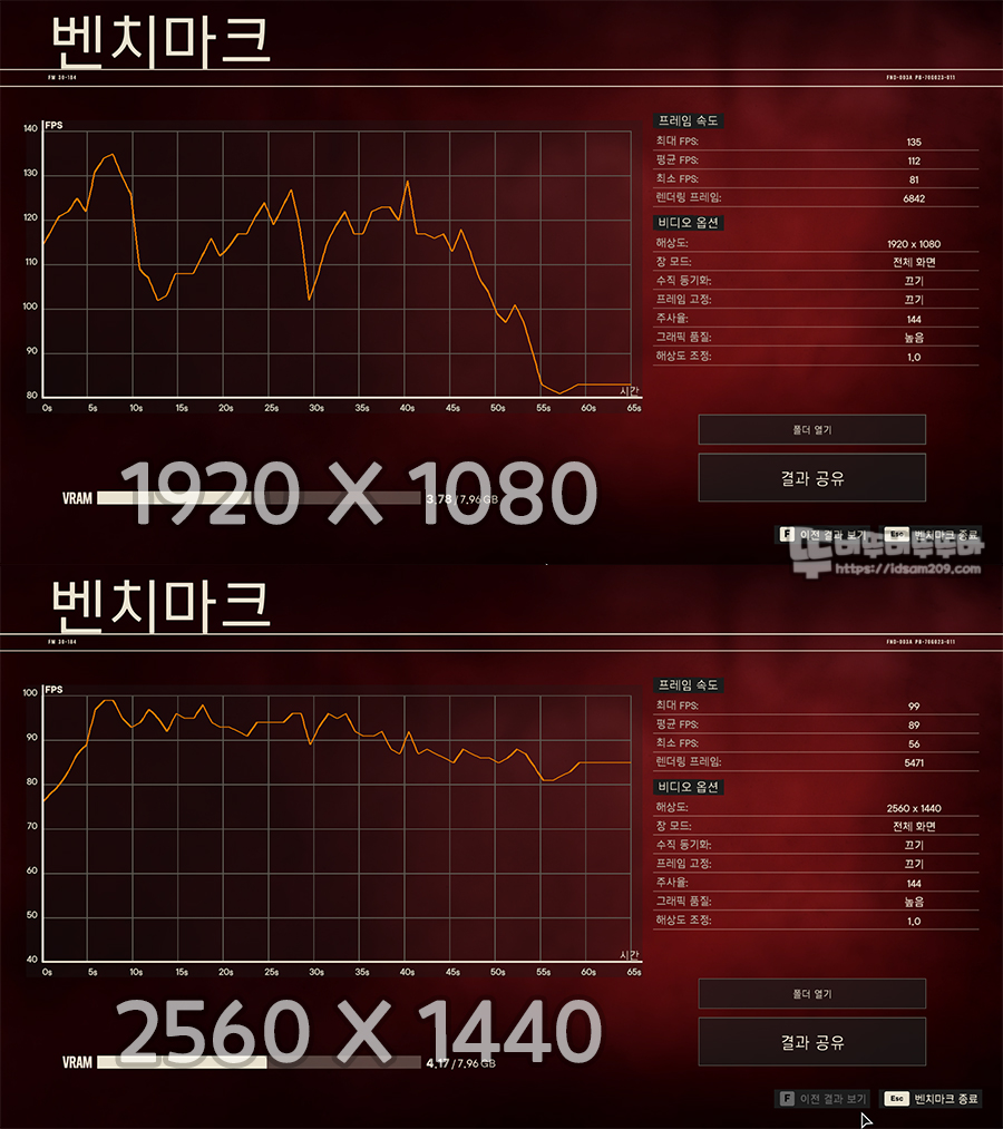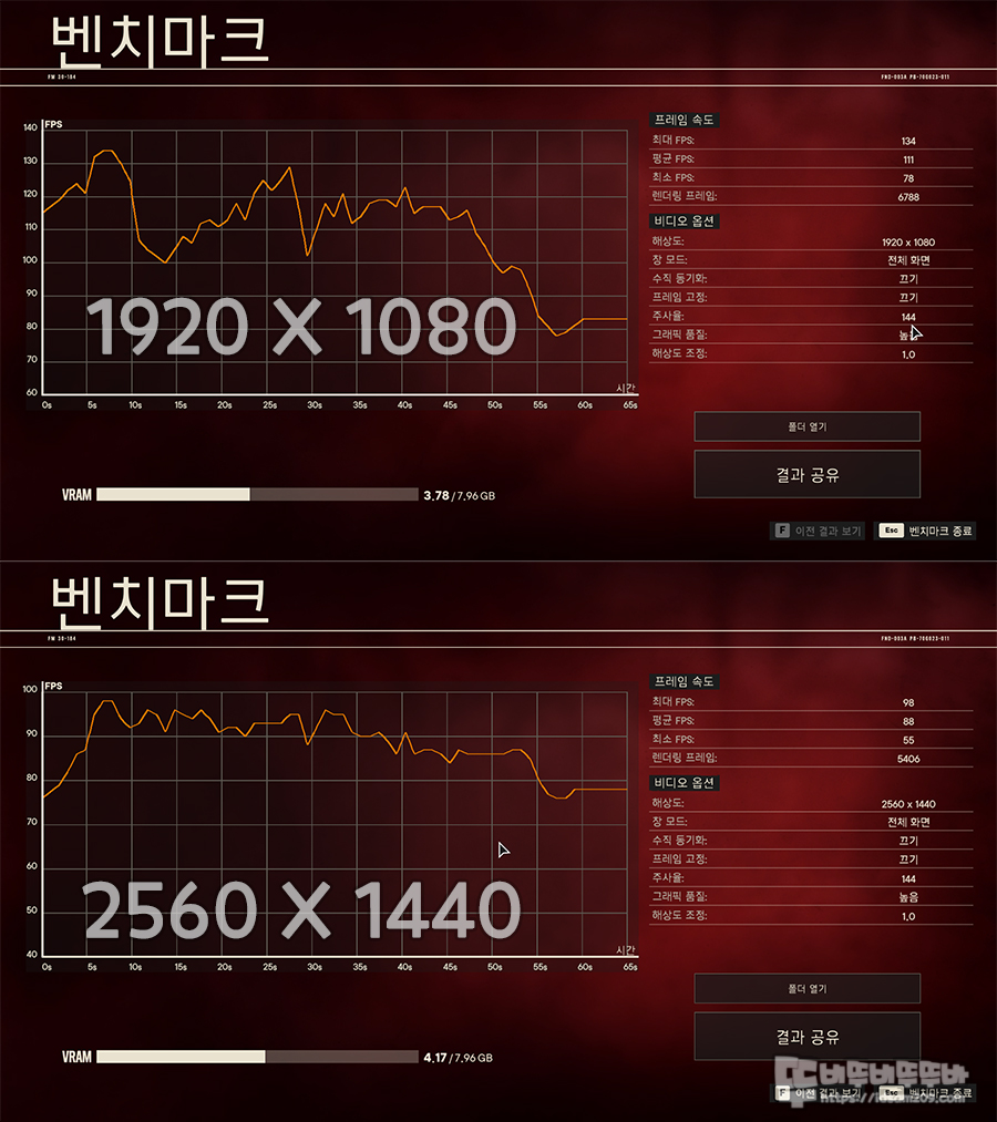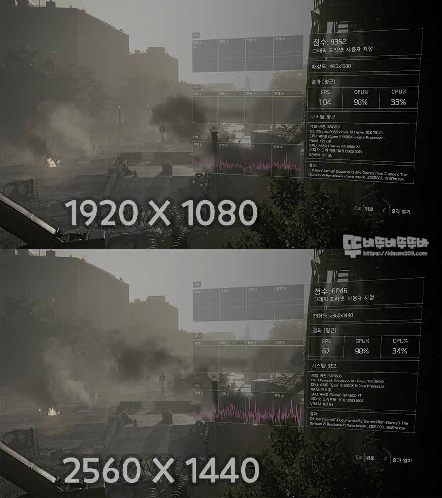 더 디비전 2에서는 1440p 해상도와 1080p 해상도를 번갈아가며 FPS와 그래픽 점수 차이를 확인해 보았는데요.