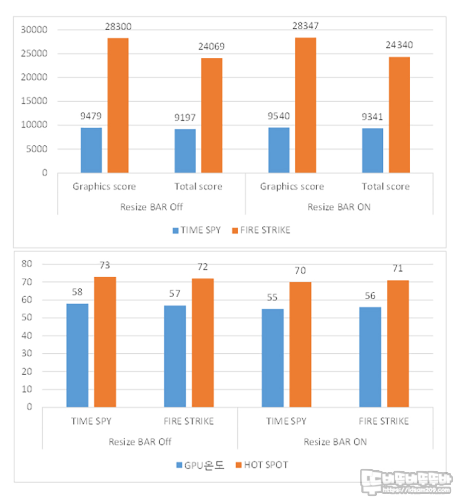 Resize BAR 활성화로 3D MARK 테스트 시 그래픽 스코어의 소폭 상승을 확인할 수 있었는데요.