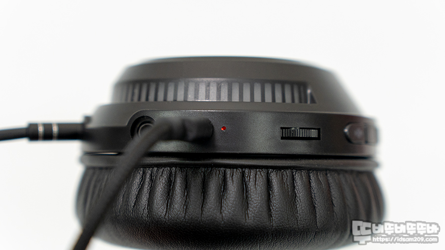 그 외로는 볼륨 다이얼과 USB-C 충전 겸 유선 사용 연결 단자, 3.5mm 스테레오 단자 그리고 마이크 입력 단자로 구성되어있습니다.