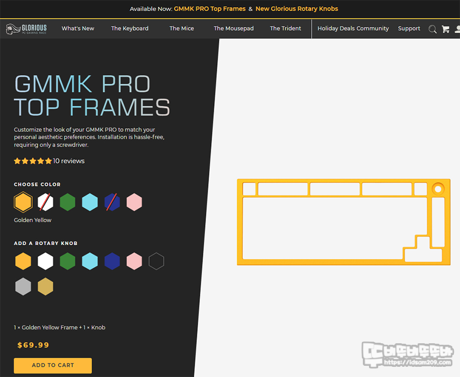 제가 구입한 컬러는 GMMK PRO TOP FRAMES (Golden Yellow)와 동일한 노브를 구입하려 했는데 주문하고 골덴 옐로우 노브가 잘 못 입고되었다고 하여 E-White 노브로 요청드렸네요.