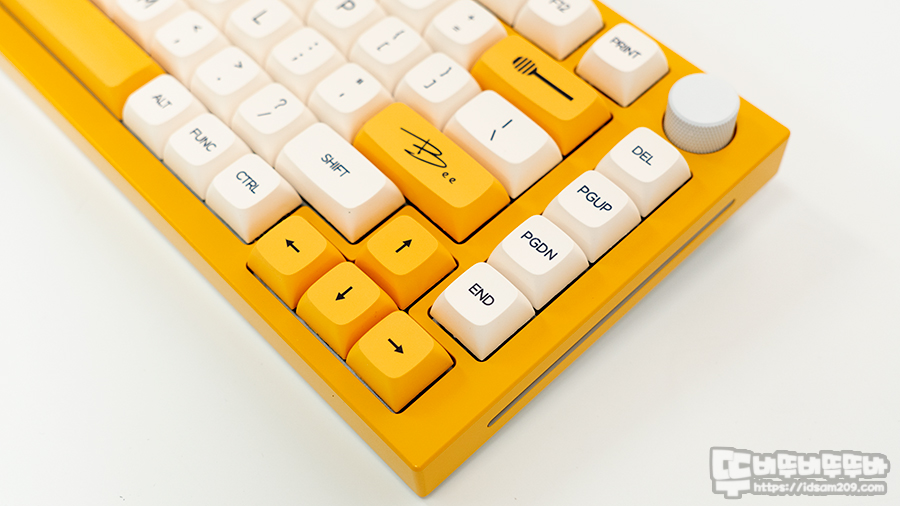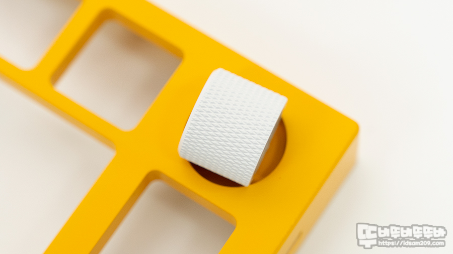 볼륨 노브도 탑 프레임과 같은 컬러로 했으면 좋았을 텐데.... 노란색의 보색으로 Blue 계열을 선택하려고 했다가 현재 사용 중인 키캡 컬러를 생각하여 E-White로 선택을 했는데요.
