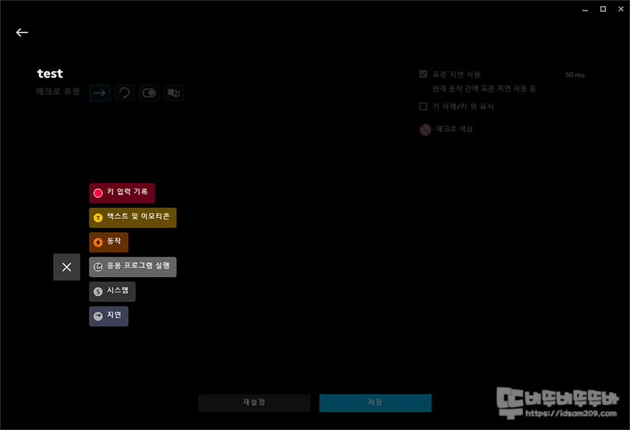 매크로 사용 시 선택할 수 있는 다양한 기능.
