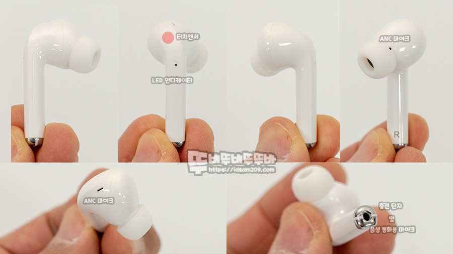 그 외 오른쪽 터치 3번으로 다음 트랙 이동, 왼쪽 터치 버튼 3번으로 음성 어시스턴트 호출 기능을 지원하며 음악 감상 중 전화 신호가 들어올 때 터치를 통해 전화 통화/ 통화 종료, 수신 거부 등이 가능합니다.