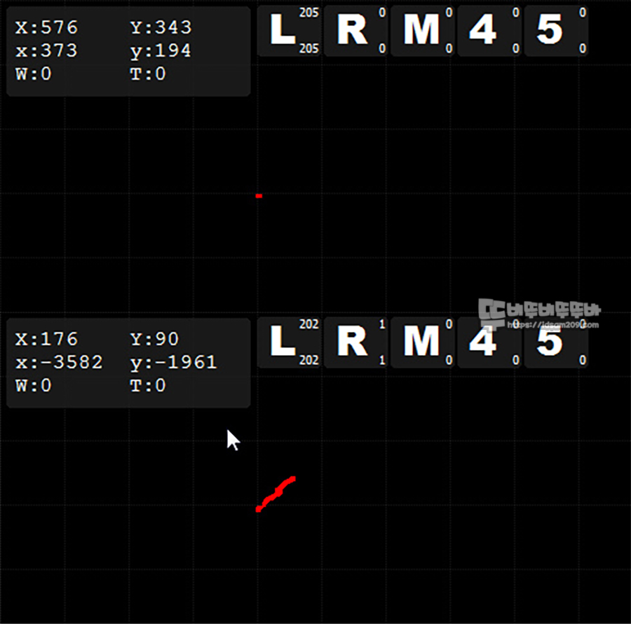 손가락과 손바닥으로 고정하는 팜 그립 또는 클로우 그립의 경우 힘을 주어 마우스를 고정한 상태에서 연속을 클릭 시 커서가 고정되어 눌리는 반면에 핑거 그립으로 연속 클릭 시 마우스 버튼의 클릭압으로 인하여 마우스가 흔들리는 것을 확인할 수 있었습니다.