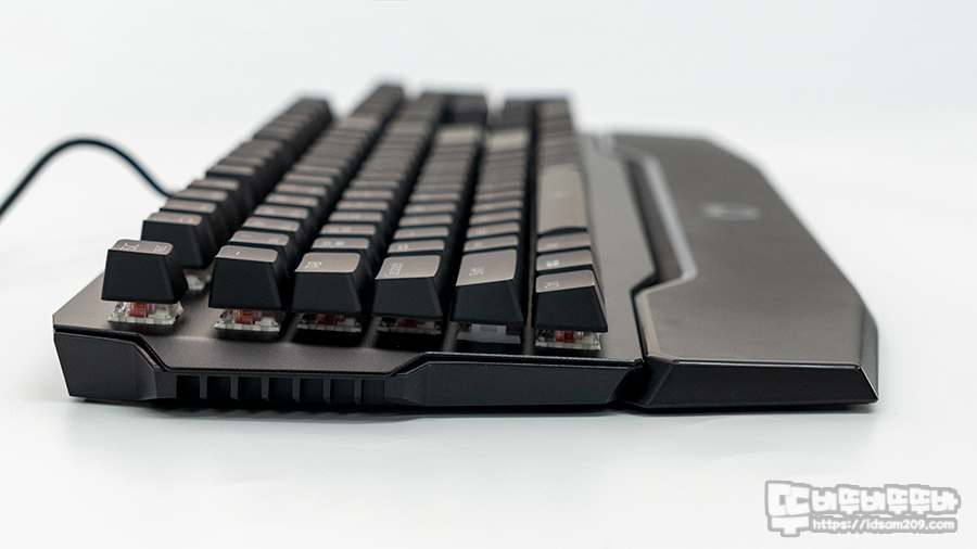 커세어를 비롯하여 기본으로 제공되는 키보드의 팜레스트 들은 대부분 손바닥 끝부분을 올려놓고 사용하는 형태가 아닌 손바닥이 걸쳐서 사용하는 간이용 디자인이 적용하는데 마이크로닉스 MECHA ZK-1도 비슷한 형태로 디자인되었습니다.