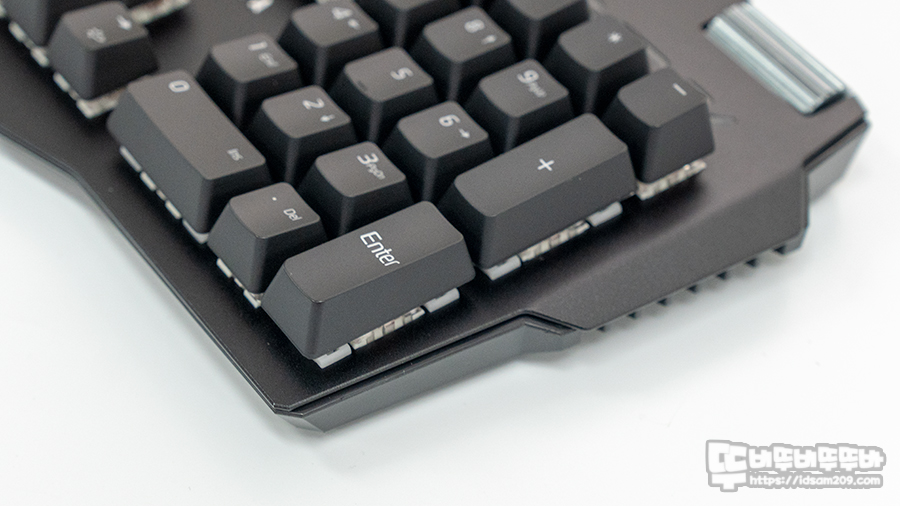 ABS 키캡에 은색 펄이 적용된 각인이 사용되어 차별화는 주지만 코팅 키캡의 벗겨지는 명확한 단점이 해결되지 않는 부분이기에 키캡에 대한 호불호가 있을 거 같네요.