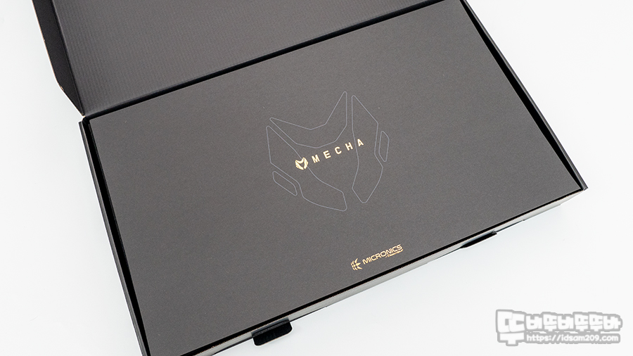 오링 커버를 분리하여 검정색 무지 박스를 확인할 수 있는데 패키지 오픈 시 금박 처리된 모델명/마이크로닉스 로고가 인쇄된 종이가 고급스러운 느낌을 주고요.