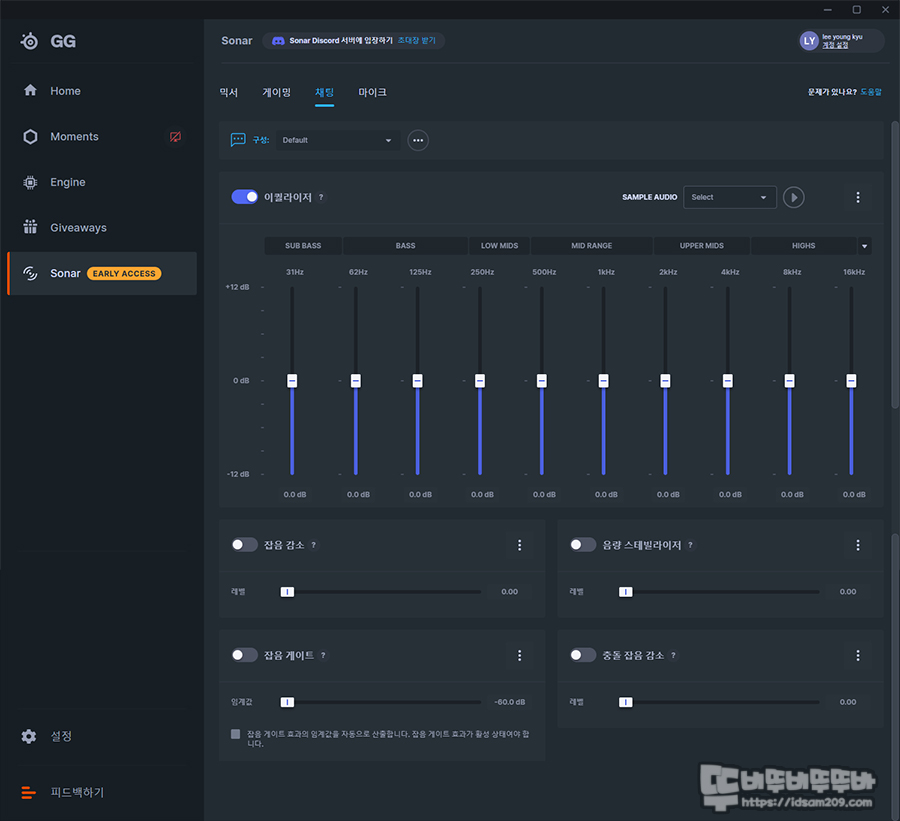 가상 7.1 채널 사운드는 Sonar 메뉴에서 확인할 수 있으니 참고하세요.