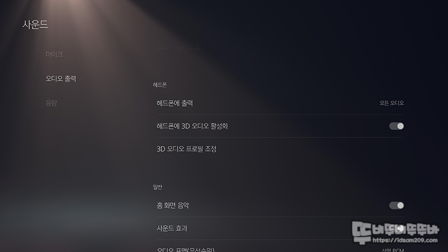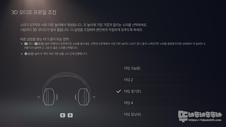 이 메뉴를 활성화하고 "3D 오디오 프로필 조정"을 선택하면 5 단계의 타입으로 3D 오디오를 선택하게 됩니다.