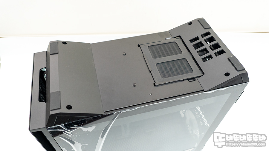 특히 상단 샤시에는 120/140mm 쿨러와 120/140/240/280/360mm 라디에이터 장착이 가능하며 메인보드 간섭을 피할 수 있게 디자인된 게 특징입니다.