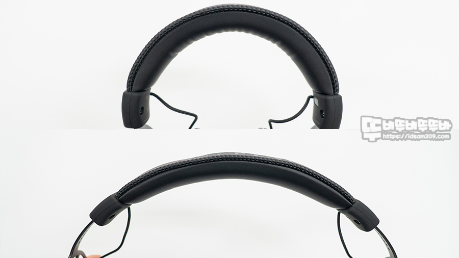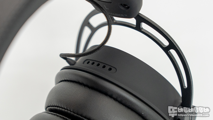 쿠션감과 유연성이 좋은 헤어밴드는 헤드셋 비틀림에도 잘 대응하며 알루미늄 소재의 C포크 부분은 안쪽에 타공홀 구분으로 좌우 밸런스를 맞추는데 도움을 줍니다.