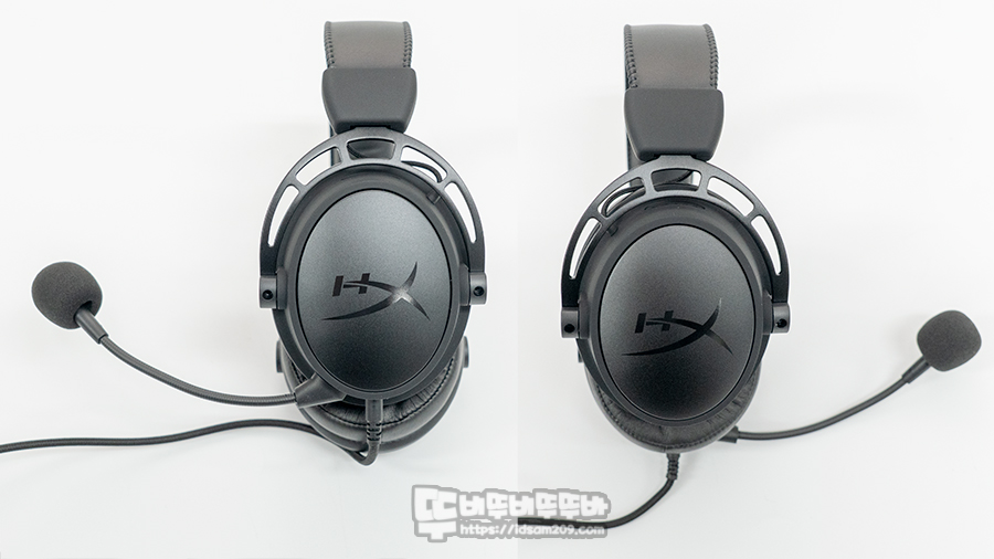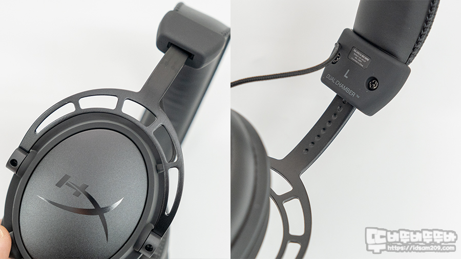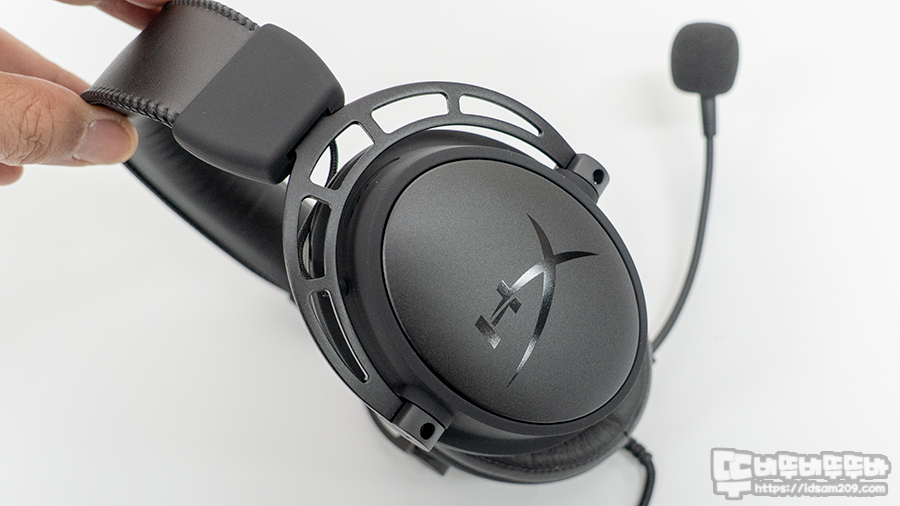 좌우 대칭형으로 디자인된 하이퍼엑스 클라우드 알파(HyperX Cloud Alpha)는 이어컵 하우징 바깥 부분에 로고가 새겨진 유광 플라스틱, 측면 부분은 러버코팅으로 처리하여 고급스러운 느낌을 주고 있고요.
