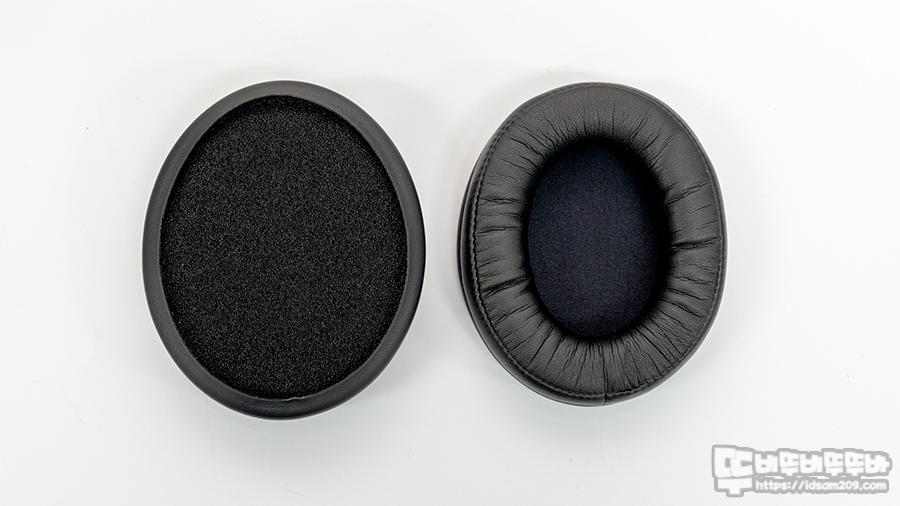 쿠션감 좋은 이어패드는 커버 형태로 씌워서 사용하지만 인조가죽 특성상 빈번하게 벗겨내는 경우 늘어날 수 있기에 가급적 벗겨내지 말고 사용하시기 바랍니다.