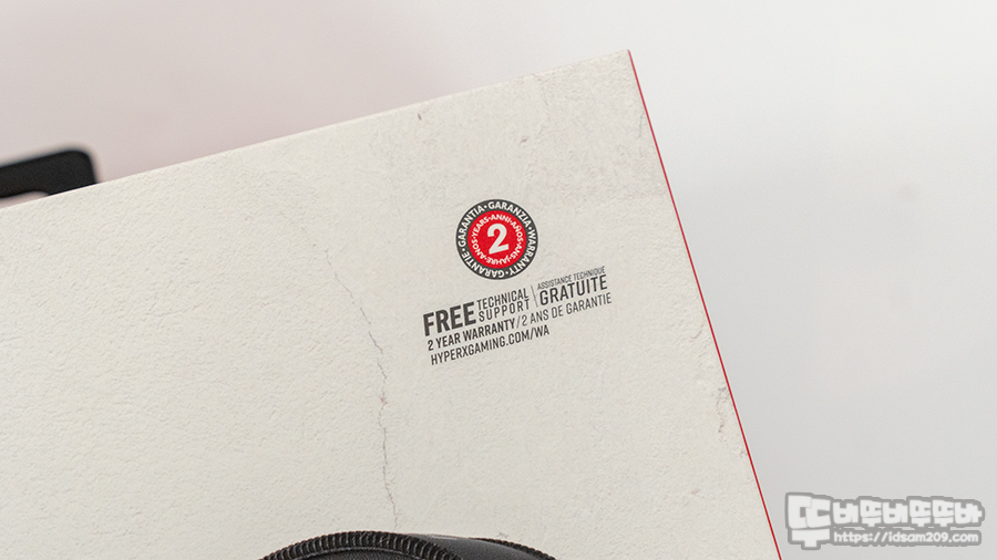 패키지 뒷면에는 시그니처 HyperX 메모리폼, 튼튼한 알루미늄 프레임, 탈착형 마이크 그리고 인라인 컨트롤에 대한 설명과 보증기간 2년에 대한 표시를 확인할 수 있습니다.