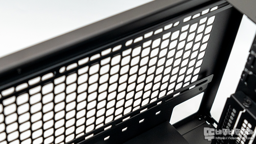 파워서플라이 장착 공간에 큼지막하게 타공 처리된 홀 모습.