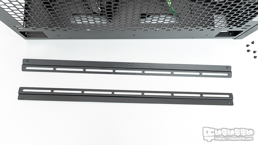 하지만, 샤시 뒤쪽에서 앞쪽으로 다양한 케이블이 넘어가는 홀이 아래쪽에 구성되어 있기에 가이드를 100% 활용하기 어려우니 무조건 구입하지 마시고 일단 조립을 완료한 다음 필요에 따라 구입하시기 바랍니다.