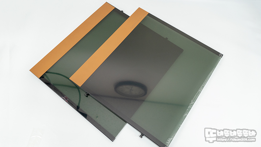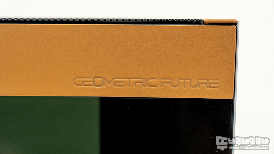 진한 스모그 느낌의 4T 강화유리 사이드 패널은 대칭형으로 디자인되었으며 케이스 정면 기준 왼쪽 사이드 패널에만 GEO메트릭퓨처로를 인쇄하여 좌우를 구분하고 있고요.
