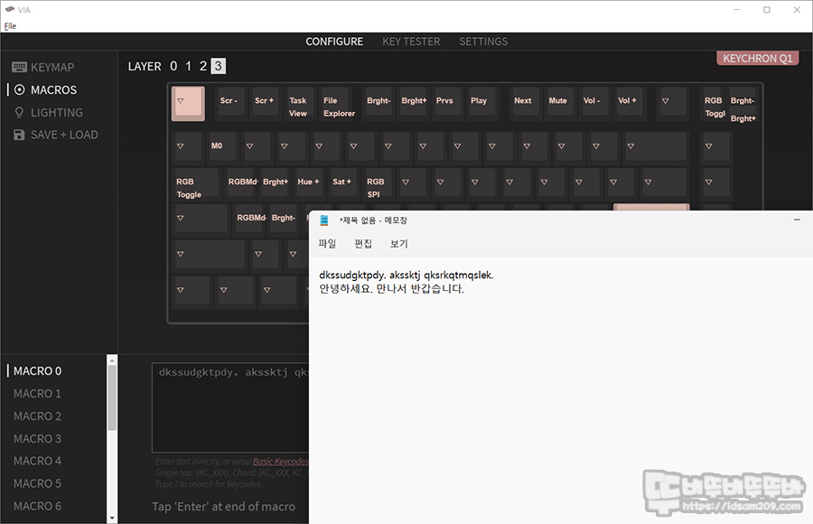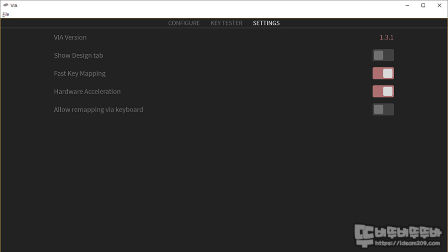 메뉴는 Configure(키 배열/매크로 설정), Keytester(설정한 키 테스트), Settings 3가지 메뉴로 구성이 되어있고요.