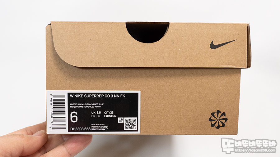 라벨에는 W(여성용) NIKE SUPERREP GO 3 NN FK 모델명 그리고 신발 사이즈 230mm 정보를 확인할 수 있는데요.