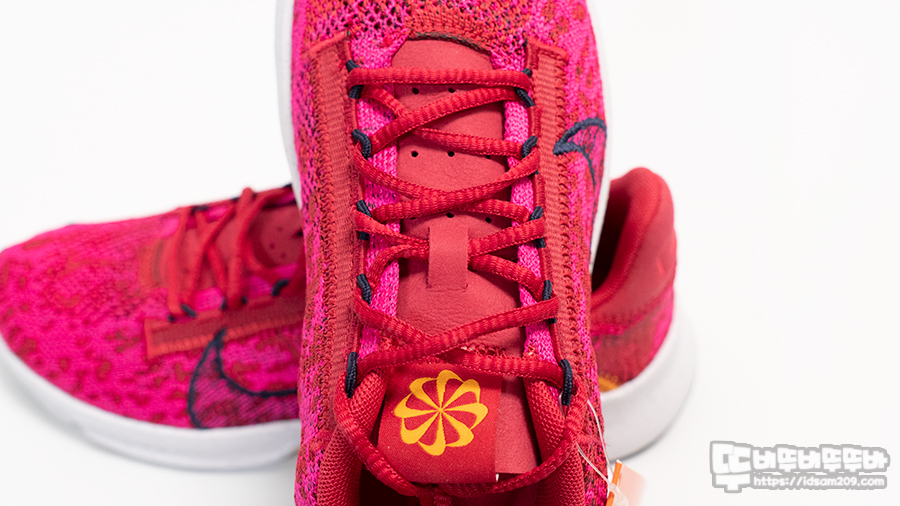패브릭 소재의 갑피 부분 전면과 측면에 자수로 나이키 로고를 표현하고 있으며 또한 신발끈을 이용하는 갑피 상단부는 스티치 처리로 튼튼하게 처리하여 부담 없이 신발끈을 조일 수 있게 디자인되었습니다.