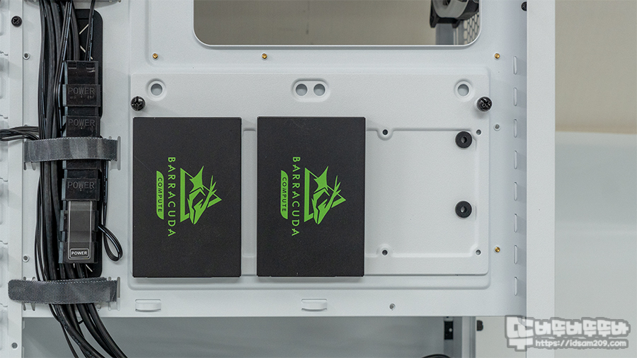 샤시 뒤쪽에 위치한 HDD/SSD 가이드는 최대 HDD 2개 또는 SSD 3개 장착이 가능하여 필요에 따라 장착하시기 바랍니다.