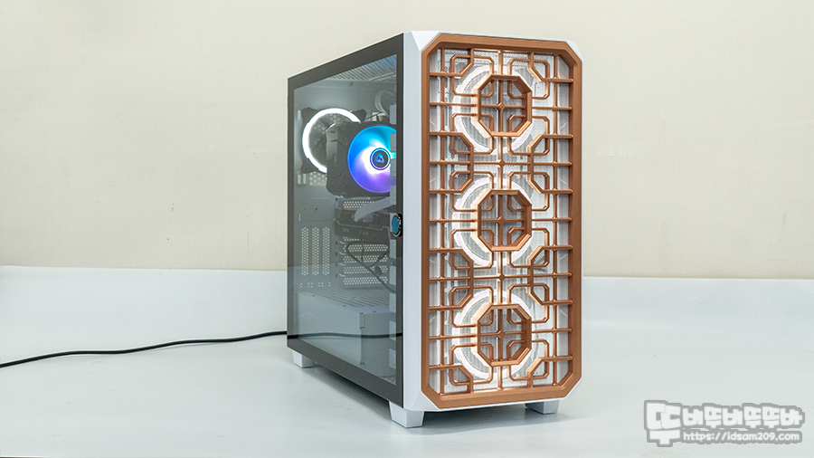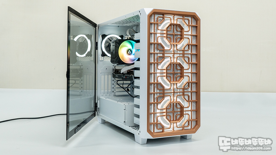 자석으로 탈부착이 가능한 전면의 창호 무늬와 3면 먼지 필터 등으로 실용적인 면도 있고 샤시의 케이블 정리 홀에 실리콘 커버가 고정되지 않는 불편함, 공정에 누락된 나사 등 QC 부분에서 살짝 아쉬운 부분도 있지만, 빅타워 디자인이기에 크기가 부담되는 부분도 무지하지 못할 거 같네요.