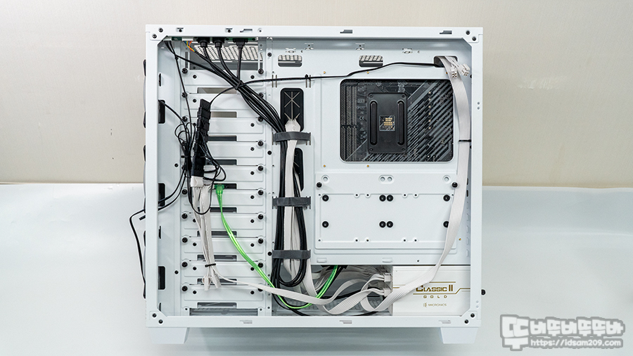 조립 과정에서 한 가지 불편한 점이라며 샤시 중앙의 케이블 정리 홀을 가려주는 실리콘 커버가 조금만 건드려도 잘 빠진다는 점인데요.