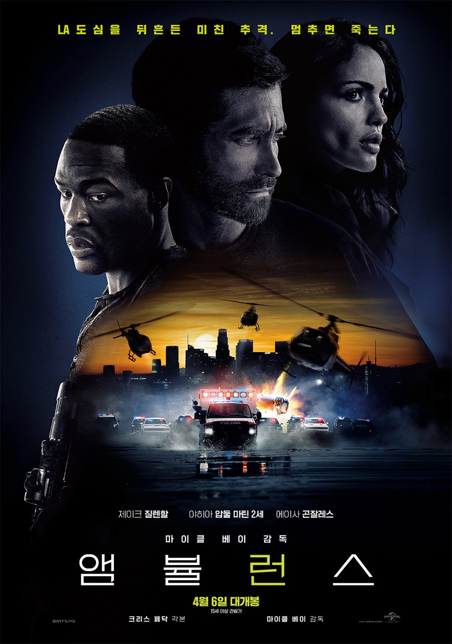 영화 앰뷸런스는 90년대 마이클 베이 전성기 때의 연출을 회상할 수 있는 빠른 템포의 전개를 기본으로 심플한 스토리 라인에 앰뷸런스를 이용한 카 체이싱 액션으로 긴장감의 텐션을 끌고 가는 액션 영화입니다.