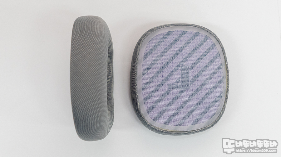 메모리폼과 땀 배출에 용이한 매쉬 소재 커버가 사용된 이어패드는 쉽게 분리가 가능한 커버형 디자인으로 되어있어 편리하게 교체가 가능하며 오버이어 디자인이지만 실제 착용 시 귀에 딱 맞는 느낌을 주네요.